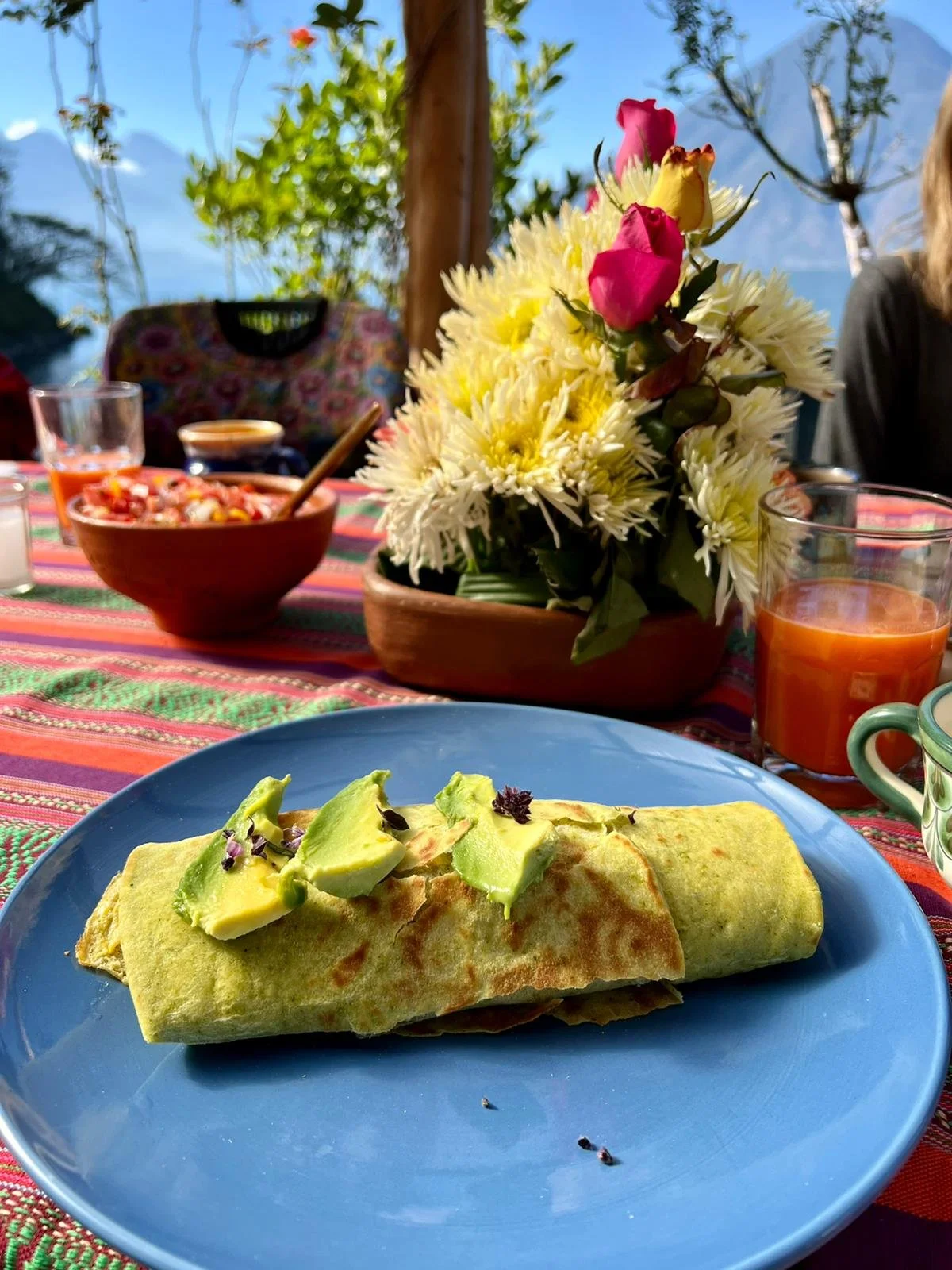 Our base-price meals are all vegetarian and all delicious, fresh and healthy—prepared with locally-grown produce and herbs and beautifully presented by our wonderful local chef, Rosa Maribel Navichoc and her team, Gaby and Alex.